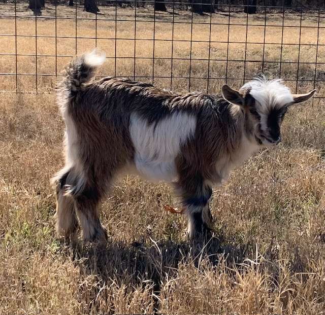 Troubadour comes from MCH parents. His Sire is 25 1/2 " and his dam 21 1/4" . This hairy little boy is disbudded and a bottle baby. He will be available in March.